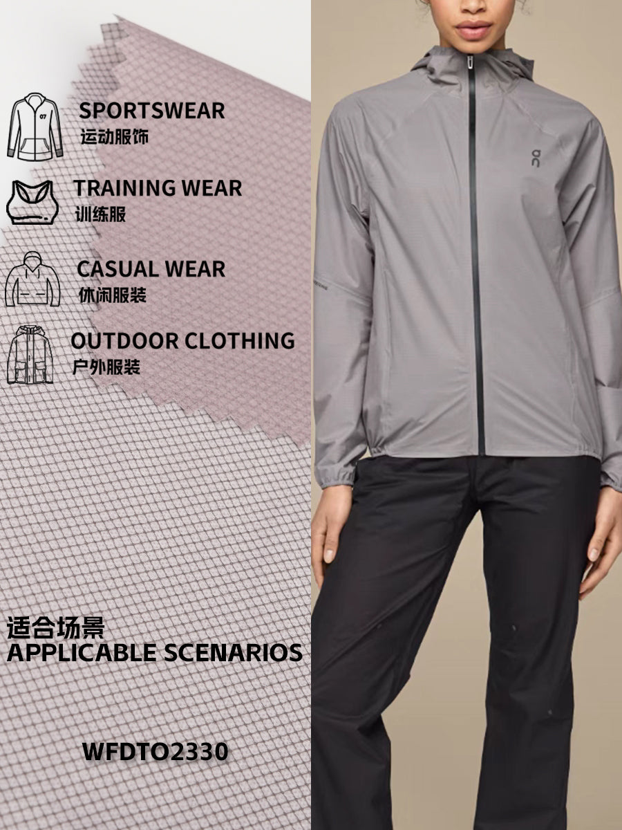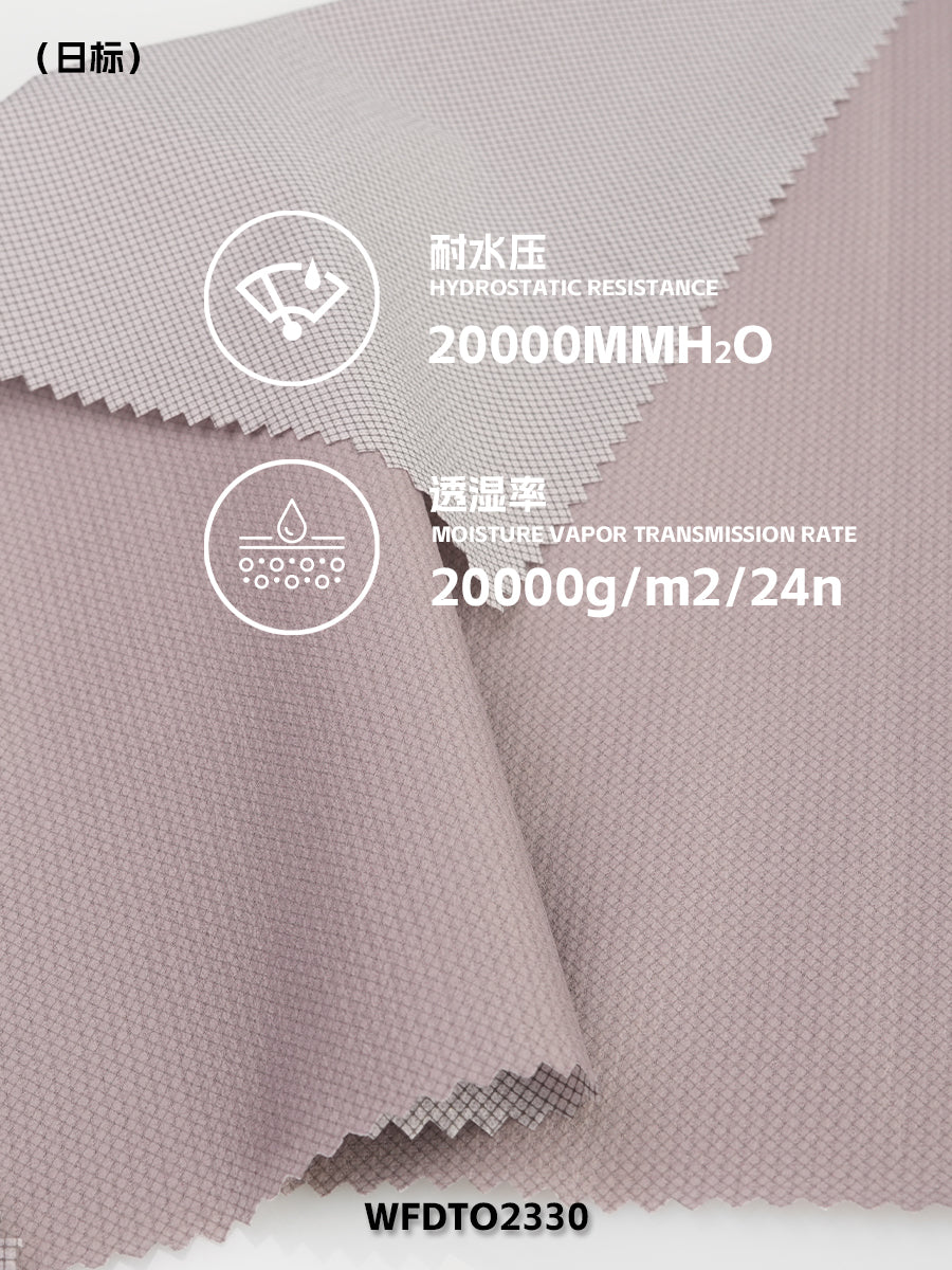 编号 Code:WFDT02330成分 Comp.: 100%N66工艺 Finish:P/D,W/R,,PU Lamination克重 Weight: 48GsM±5%幅宽 Width: 140CM±5%